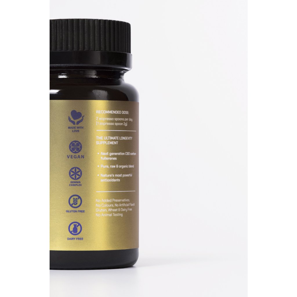 Tento prémiový doplněk stravy kombinuje vědecky zkoumanou molekulu C60 s bohatstvím přírodních antioxidantů, rostlinných extraktů a superpotravin.